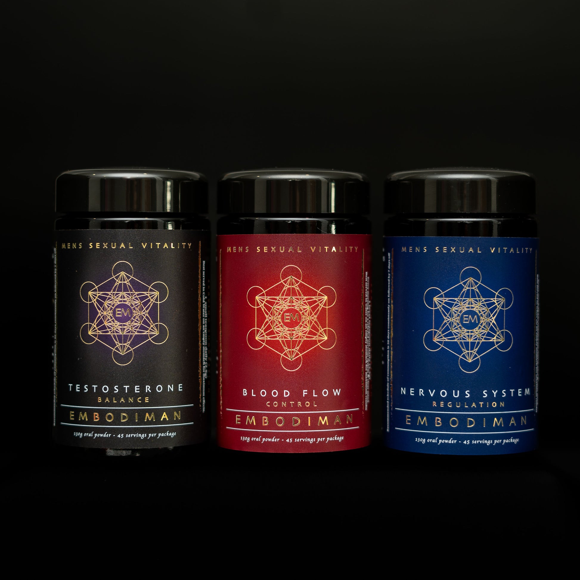 This curated set is designed to boost testosterone, improve blood flow, and support a calm, focused nervous system — giving you strength, stamina, and inner balance every day.